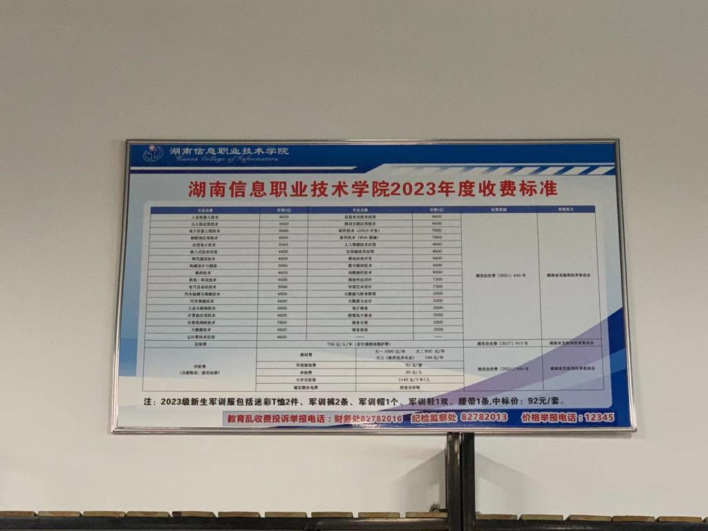 大一1000元/年 大二800 元/年 大三(软件技术专业) 100元/年 |