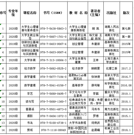根据教育部关于《职业院校教材管理办法》要求,依据学院的规定程序,部门教材委员会于4月28日、5月6日召开了教材选用审定视频会议,选订了我部门基础课程的教材使用版本。现将选用结果公示如下: