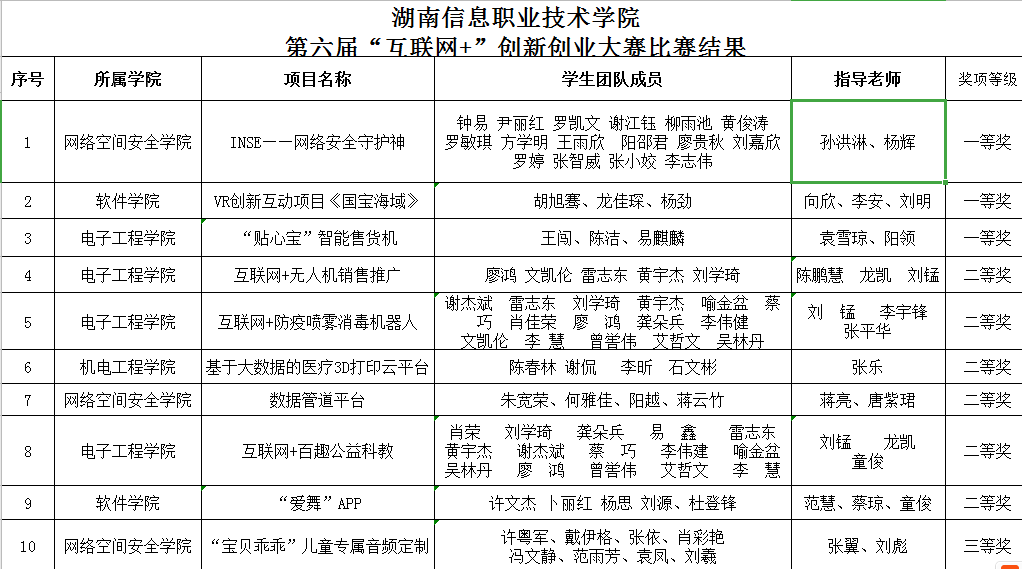 最后推荐《INSE——网络安全守护神》和《VR创新互动项目《国宝海域》参加湖南省第六届“互联网+”大学生创新创业大赛选拔赛职教赛道,《互联网+百趣公益科教》参加红旅赛道。