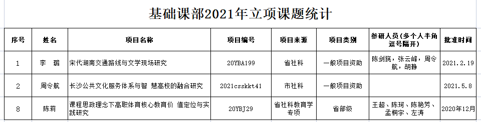基础课部2021年立项课题统计