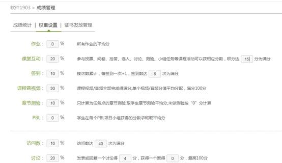 9.关于本学期各部分参数需老师们自己设置,没有混合年级的可用自己账号勾选对所有班级生效,有混合年级的只能先一键设置,再逐个修改大二班级。大一参数如下: