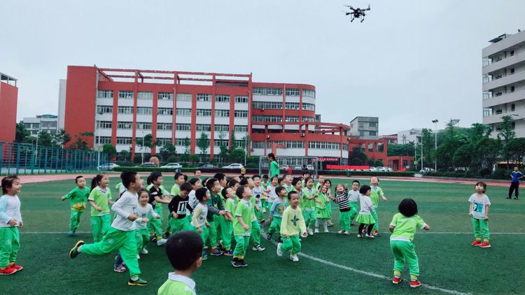 无人机徐徐升起,孩子们兴奋得竞相追逐,仿佛追逐心中梦想般快乐。