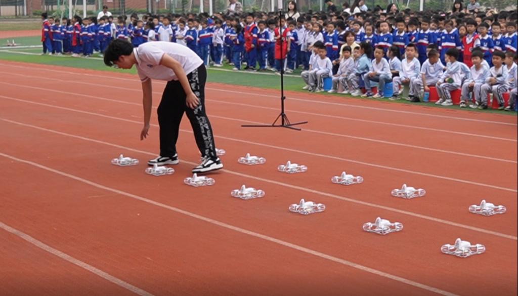师生观看无人机飞行表演