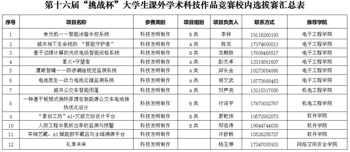 上一条:关于推荐参加第十六届“挑战杯”湖南省大学生课外学术科技作品竞赛名单公示
