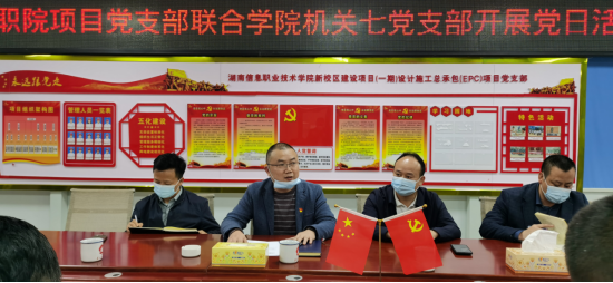 5月10日,机关七党支部全体党员来到新校区与湖南省建工集团六公司湖南信息职院项目党支部联合开展“不忘初心跟党走,牢记使命新征程”的主题党日活动。