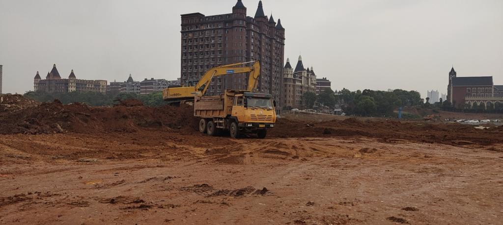 1.继续进行场地清表、东南侧预留用地场地平整、东南侧院内道路土方清淤、回填和压实。