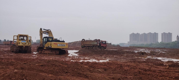 6.靠近高原路至旺旺西路内部临时施工便道,土方回填计划完成至50%;