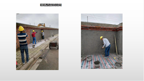 8. 旺旺西路围墙粉刷、公益广告铺贴已完成20%;