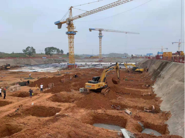 4.7#栋:南栋桩基础土方开挖、垫层管桩完整试验(F-A轴)、塔吊安装。