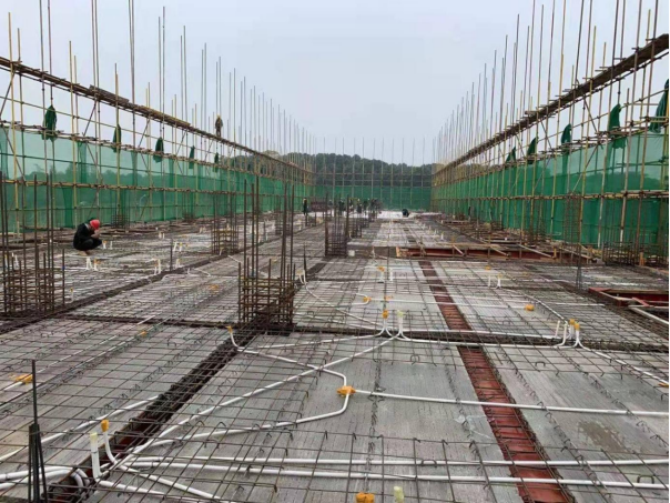 3.4#栋:南向四层柱五层板、西边连廊、北向三层柱四层板浇筑完成。