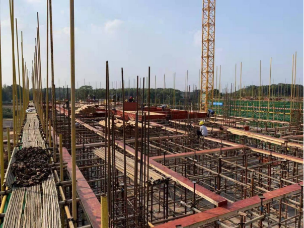 3. 4#栋:南向二层梁板完成,西边连廊过道完成80%,北向二层平板完成70%。(钢筋工、木工、塔司、管理人员共计:85人)