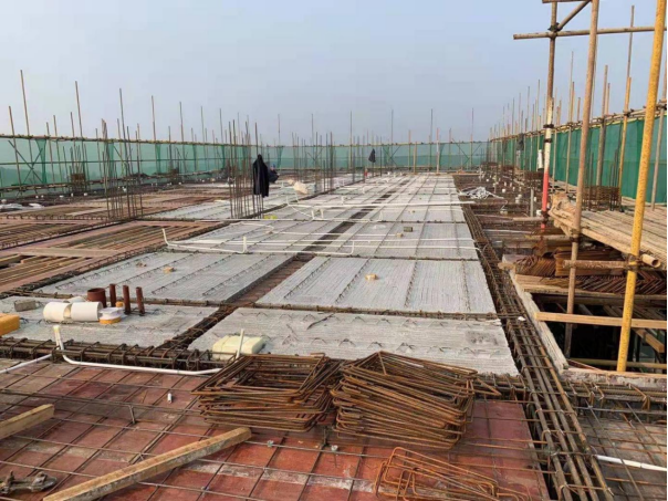 6.9#栋:1区2区铺设5层平板、3区4区铺设4层平板、5区绑扎3层梁板钢筋。
