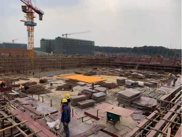 5. 6#栋:1-7轴支模架搭设完成。(2台小挖、木工、钢筋工、管理人员共计:40人)
