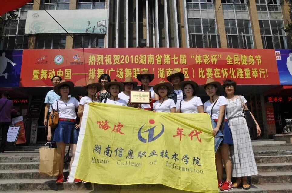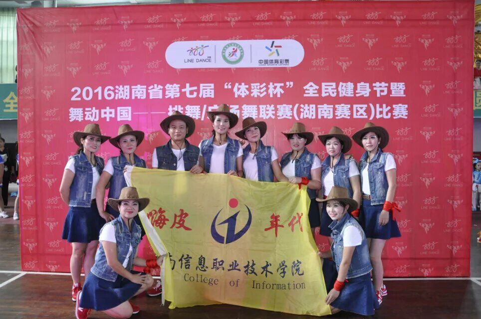 为了深入贯彻落实《湖南省全民健身条例》,大力实施全民健身国家战略,提高全校教职员工科学健身意识。工会和院体育部特选派best365官网十名教师组建“嗨皮年代”排舞队,于2016年9月24日代表学院参加湖南省体育局举办的湖南省第七届全民健身节在怀化举办的排舞比赛。