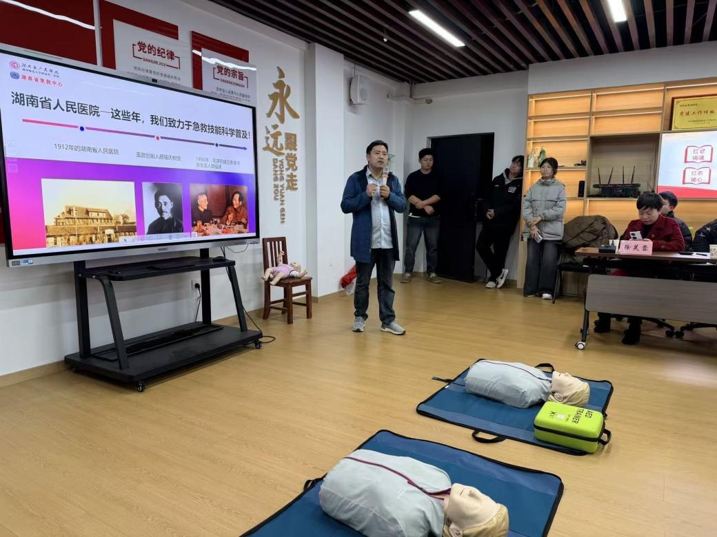 党建引领显实效,守护平安促发展。此次党建联建活动成效显著,实现了“精神滋养”与“技能提升”的双重目标。党的二十大代表、湖南省人民医院急诊三部ICU护士长徐芙蓉同志作了党的二十届四中全会精神专题宣讲。她用一线医护人员的视角和鲜活案例,阐释了新时代党员的初心使命与责任担当。其感人事迹和深刻见解给在场师生进行了一次深刻的思想洗礼,激励广大教师坚守立德树人初心,担当为党育人、为国育才使命。通过支部联建,师生在生命教育和应急管理方面的专业素养得到了实质性提升,为构建“平安校园”提供了坚实的技能保障和人才支撑。