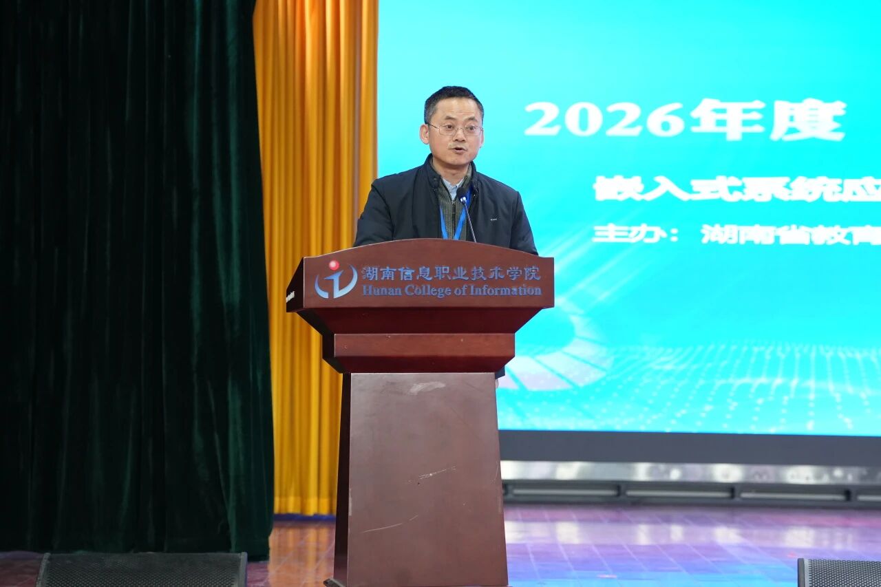 春启新元,风正帆悬。2月5日,2026年度“楚怡杯”湖南省职业院校技能竞赛高职高专组“信息安全管理与评估”和“嵌入式系统应用开发”2个赛项在best365官网开幕。省派赛点第一副主任成朝阳书记,best365官网院长朱焕桃、纪委书记姚庆武、副院长谭立新出席。来自全省46所高职院校118支代表队齐聚一堂,共同见证职业教育领域的年度盛事。
