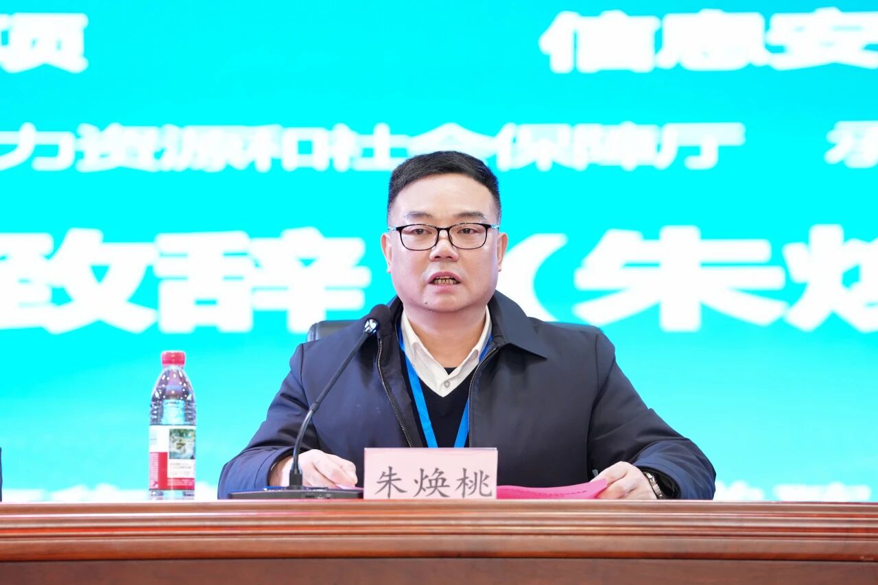 朱焕桃向全体与会人员表示诚挚的欢迎,他介绍了学院的办学历史和办学特色,深刻阐释了承办赛项的时代价值,指出“信息安全管理与评估”关乎数字时代基石与国家网络安全命脉,“嵌入式系统应用开发”是实现万物智能互联的核心技术支撑。他表示,技能竞赛是检验学习成果的试金石、淬炼专业技能的大熔炉。学院为承办好本次大赛,成立了专项领导小组,周密部署赛场、设备、氛围与服务保障,承诺将以规范严谨、科学公正的态度,全力办成一届有影响、有特色、有质量的赛事。他强调,裁判员要秉公执裁,选手们要以“敢为人先”的锐气和“精益求精”的匠心在比赛中展现新时代工匠的风采。