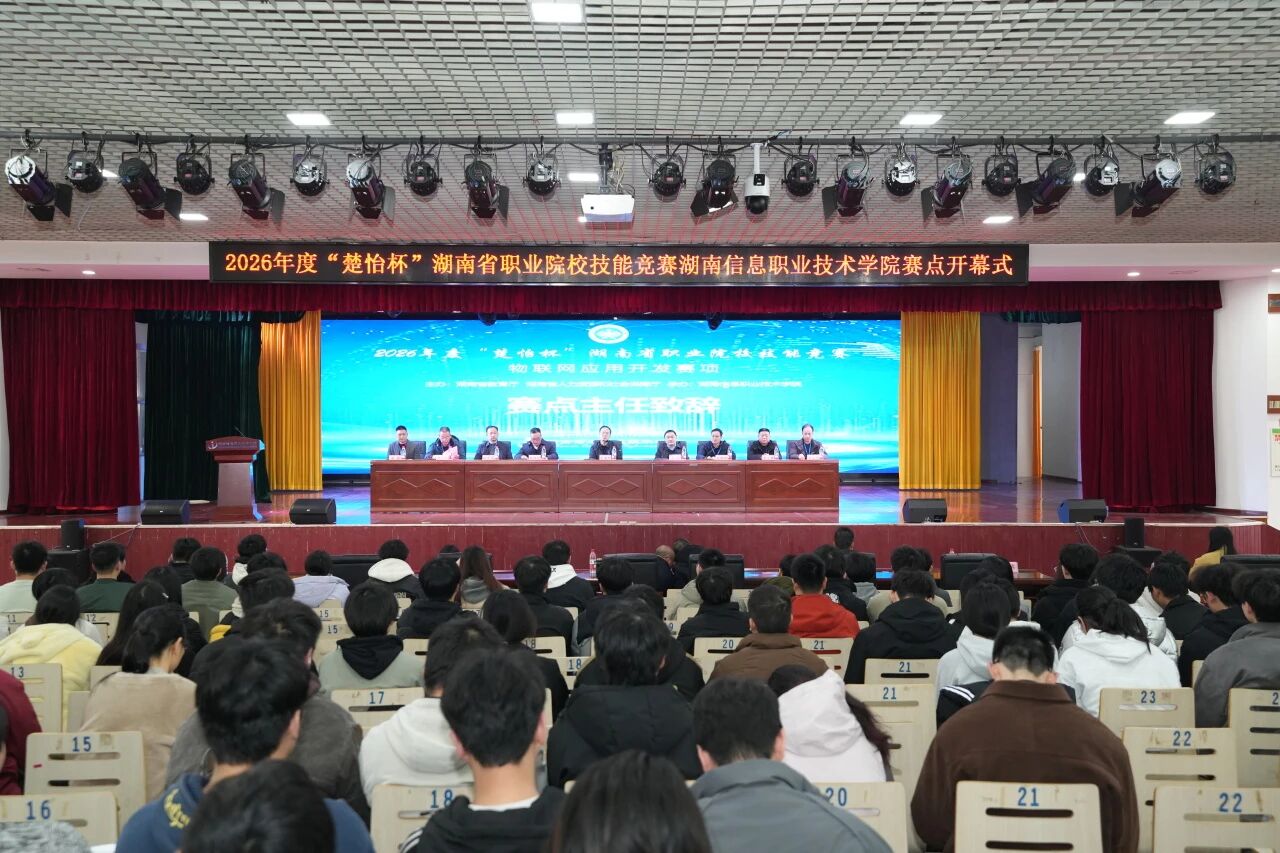 2月6日,2026年度“楚怡杯”湖南省职业院校技能竞赛高职高专组“物联网应用开发”赛项在best365官网开幕。省人社厅职业能力建设处二级调研员羊国杰、省教育厅职成处副处长王宇、省派赛点第一副主任成朝阳,院长朱焕桃、纪委书记姚庆武、副院长谭立新出席。来自全省26所高职院校的51支代表队齐聚一堂,共同见证职业教育领域的年度盛事。