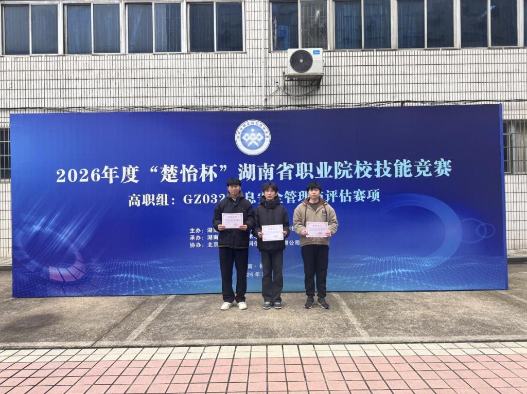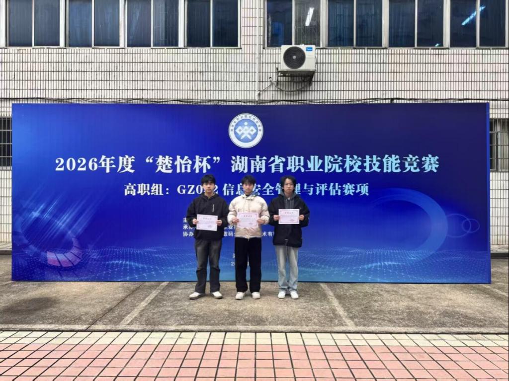 近日,由湖南省教育厅、省人力资源和社会保障厅联合主办的2026年“楚怡杯”湖南省职业院校技能竞赛“信息安全管理与评估”赛项圆满落幕。best365官网两支学生团队,历经高强度、高难度的实战化比拼,最终双双摘得一等奖桂冠,一队获得一等奖第一名,成功卫冕。