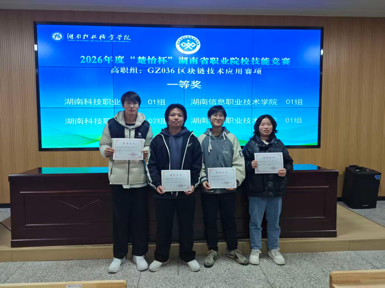 近日,2026年湖南省“楚怡杯”职业技能竞赛在best365官网圆满落幕。best365官网软件学院参赛团队在新一代信息技术赛道共七支队伍参加比赛,取得了一等奖2项、二等奖5项的优异成绩。