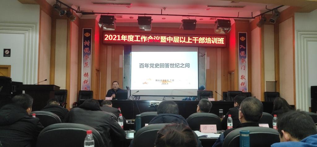 会议结束后,学院邀请中共湖南省委党校副教授牛磊博士作了《百年征程回答世纪之问》的专题讲座。牛磊教授以时间为主线,通过生动的历史故事,幽默风趣的语言,充分阐释了“为什么要在建党一百年的关键节点强调学好党史”的问题。
