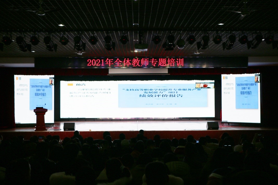 朱焕桃解读了提质培优行动计划的主要目标、任务,介绍了专业结构精准对接区域产业发展需求、持续推进高水平专业建设、创新思想政治教育模式、推进标准体系建设、加强教学团队建设、深化产业学院内涵建设等2021年学院重点工作。