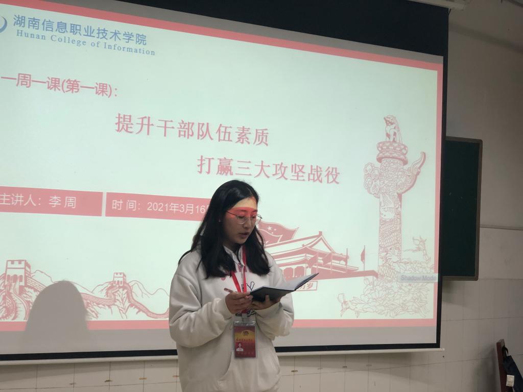 为了提高学生干部的思想政治素质、业务素质,进而打造一支为全体学生服务的优秀学生干部队伍,3月16日,院团委以“提升干部队伍素质,打赢三大攻坚战役”为主题,引导学生干部立足新时期以“为生服务孺子牛、创新发展拓荒牛、艰苦奋斗老黄牛”的精神担当作为,拉开了新学期 “一周一课”专题活动的序幕。