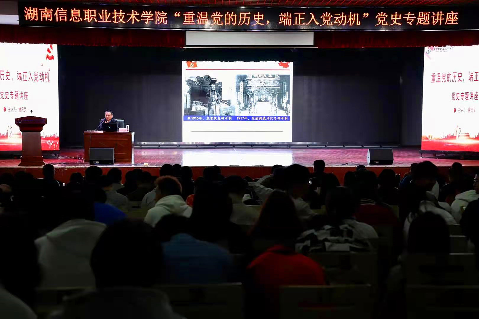 为了激发青年学生学习党史的热情,进一步加强对入党积极分子的培养、教育,提高入党积极分子的政治素质和理论修养,坚定理想信念,传承红色基因。4月13日,党史学习教育长沙市委宣讲团成员,湖南信息职院党委委员、纪委书记姚庆武副教授为全校617名入党积极分子作了题为“重温党的历史,端正入党动机”的专题讲座。