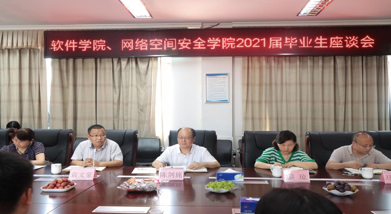 6月22日,软件学院、网络空间安全学院召开2021届毕业生座谈会。院长陈剑旄出席,20名毕业生代表、毕业班辅导员及相关二级学院负责人参加。
