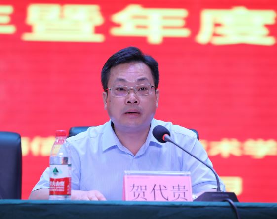 学院党委书记贺代贵在会上作了《努力接续奋斗奋力开创新局》的讲话。他首先代表学院党委向受到表彰的先进基层党组织、优秀共产党员、优秀党务工作者表示热烈的祝贺。他强调,今年是学院“十四五”规划开局之年,是开启“三大攻坚目标”的起步之年。我们必须从党史中汲取从胜利走向胜利的成功经验,从校史中发扬以攻坚深化攻坚的宝贵精神,要以开阔的视野谋划发展、以坚强的组织保障发展、以优秀的典型激励发展,继承和发扬共产党人的艰苦奋斗精神,坚定信念,矢志奋斗,以新视野、新路子、新气象,不断开辟学院改革发展新局面。