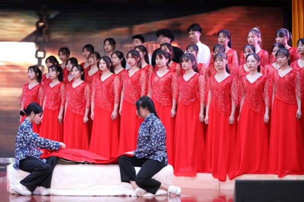 表彰结束后,全体师生观看了以江姐为原型的音乐剧《红旗颂》、雷锋教导团演绎的擒拿格斗表演《风华正茂》、中华传统舞龙表演《龙腾盛世新时代》、坚守初心、勇敢追梦的歌曲合唱《不忘初心梦想启航》等精彩纷呈的文艺节目。学院师生用一首首满怀爱国深情的歌曲,一支支激情洋溢的舞蹈书写着对党和国家的挚爱与真诚。