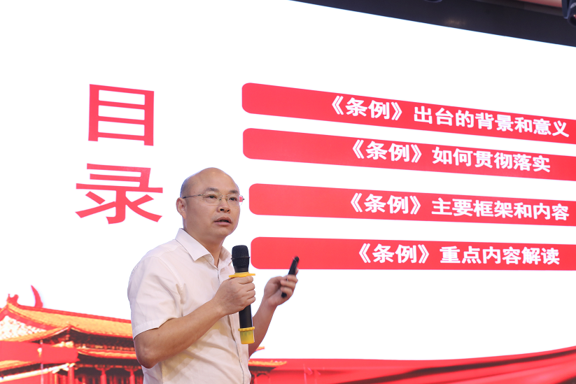 党委委员、副院长罗述权为培训班学员解读《中国共产党组织工作条例》,他从条例出台的背景和意义、贯彻落实的措施、主要框架和重点内容等方面全面系统地进行解读,他围绕学院“三大攻坚目标”,联系学院党的组织体系建设、干部工作等重点工作,以具体措施来贯彻落实条例规定,为提升学院党的建设和组织工作指明了前进方向和践行路径。