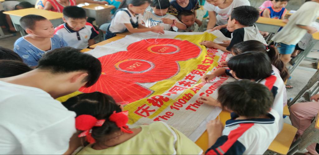 志愿团队不仅为同学们进行数学、英语等文化课程的辅导,还开展了美术、无人机、跆拳道、篮球、乒乓球、刺绣等兴趣拓展课堂。活动中,志愿者们耐心指导学生操控无人机、认真指点学生用画笔描绘生活、带领学生共绣“建党一百周年”标识……志愿者们通过沉浸式教学和寓教于乐的方式,帮助学生开阔视野,增长知识,激发学习的兴趣与热情。