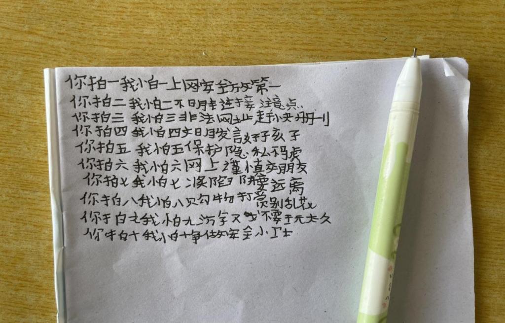“你拍一,我拍一,上网安全放第一,你拍二,我拍二……” 志愿者们结合自身专业技能,为低年级小朋友,编制了一首朗朗上口的网络安全歌曲,生动讲解了网上谨慎交友、不沉迷网络游戏、不随意直播打赏等网络安全知识。针对高年级学生,志愿者则通过还原网络诈骗的操作手法并结合真实案例的分析,向学生详细介绍如何有效防范网络诈骗。