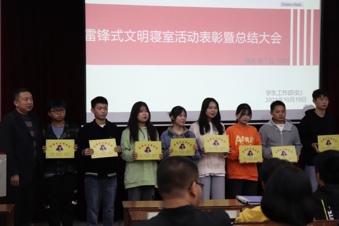 大学生寝室是大学校园文化的窗口,是学校精神文明建设成效的体现。为进一步推进寝室文明建设,优化学习生活环境,10月19日,学生工作处举行了“相约雷锋故乡,共建和谐公寓”学生公寓安全宣讲暨文明寝室表彰大会,宣讲学生公寓安全知识,评出了10个2020-2021年度“雷锋式文明寝室”和18个“免检寝室”。