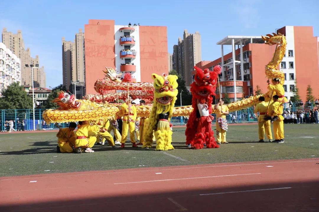 “随着铿锵有力热闹非凡的锣鼓阵阵响起,两条长龙在场上翻腾起舞,两头耀武的雄狮,踢跳翻登,立卧滚抖,精彩表演惹得师生奋力鼓掌,满堂喝彩”。舞龙舞狮表演后,师生们整齐划一的广播操表演、眼花缭乱的手势舞、动感啦啦操……学院师生为开幕式献上了精彩的文艺表演,为开幕式营造了热烈的氛围。开幕式结束后,接力赛、铅球、跳远、跳高等各类比赛项目有序开展。