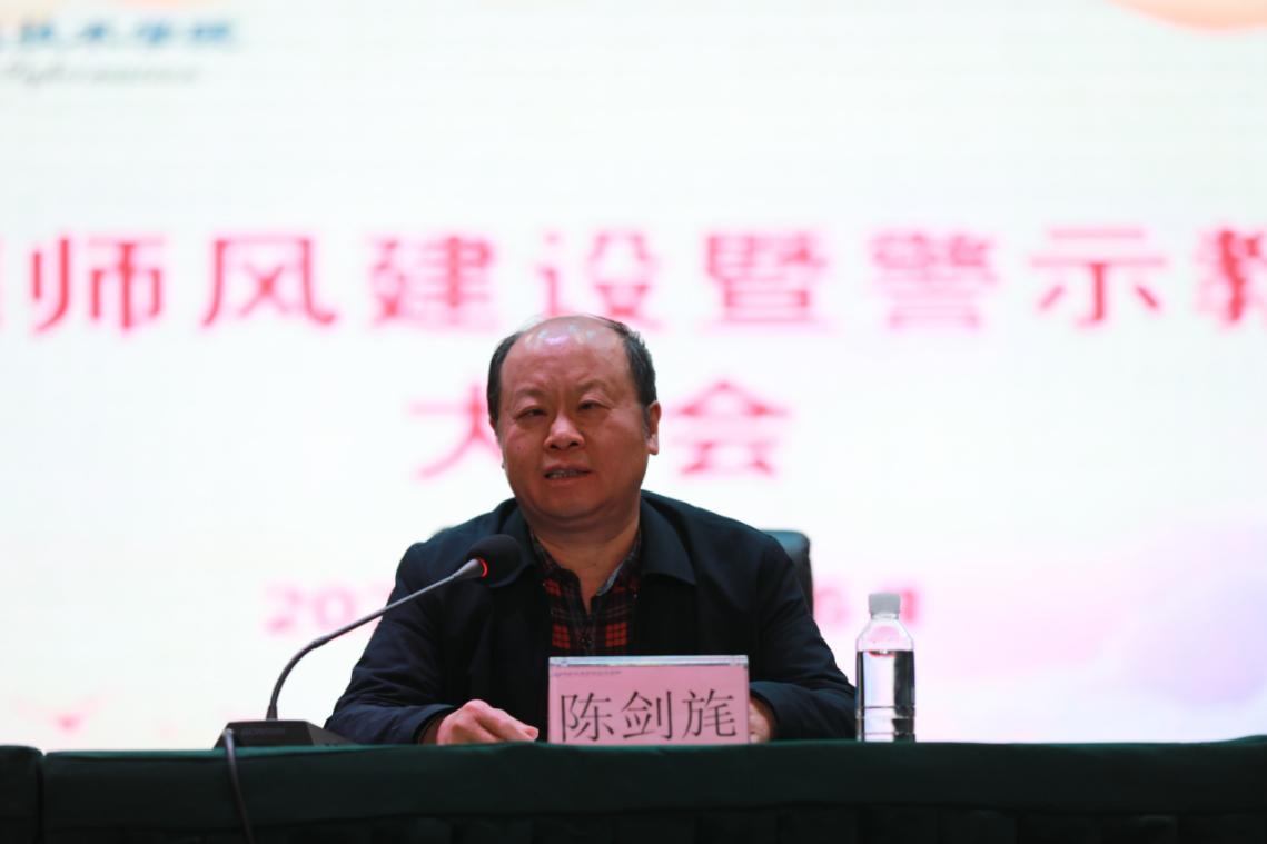 为进一步加强师德师风建设,弘扬教师师德风范,展现教师良好形象,营造良好育人环境,11月16日下午,best365官网召开师德师风建设暨警示教育大会。院长陈剑旄等院领导出席,全体教职工参加,党委副书记苏基协主持。