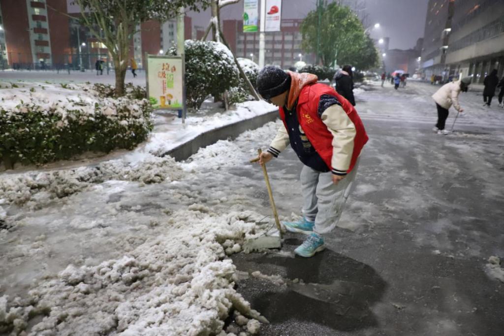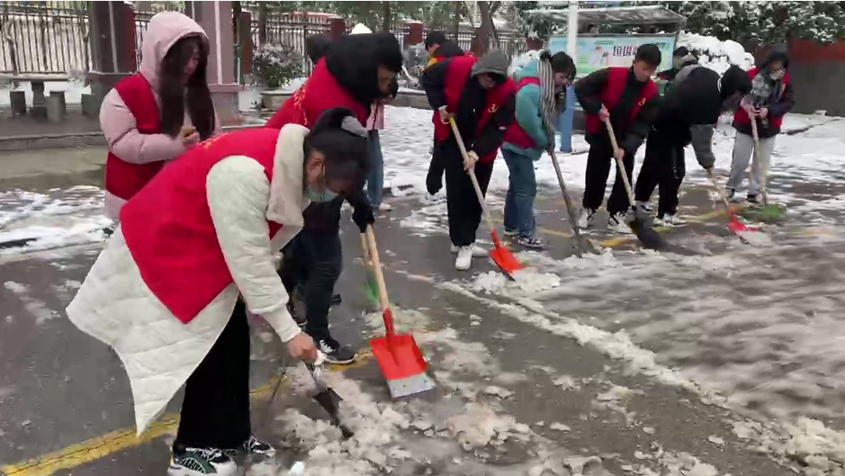 “从雪花落下,我们青年志愿者队伍群里就开始自发集结组织,100多人的队伍大家分时段、分区域开展道路清雪活动,看到朋友圈里为我们点赞的老师、同学,心里异常温暖,我想这就是志愿服务的能量吧。”参加这次雪天清扫活动的王同学说道。