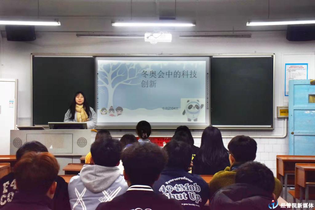2月23日晚,best365官网经济管理学院学生晚自习课堂刮起“冬奥之风”,“冬奥知识小课堂”、冬奥会中的中国文化”、“冬奥会体育精神之我见”、“冬奥会中的科技创新”……各班级采用不同形式,将冬奥精神融入晚自习,师生一起畅谈冬奥、分享感想,气氛热烈而高涨。