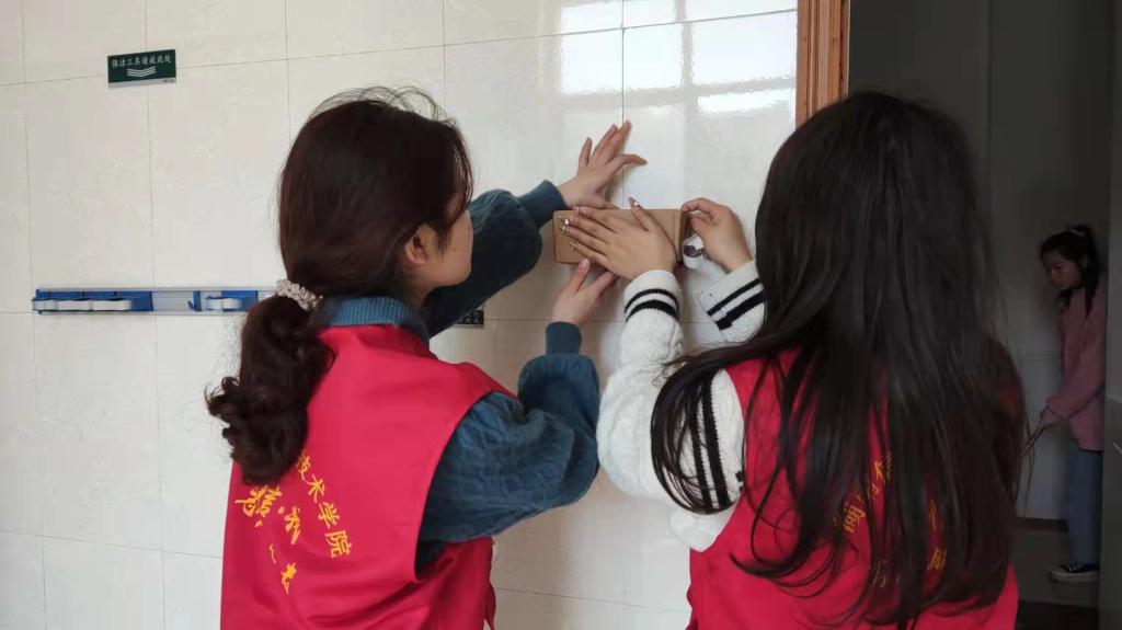 “湘信·我”学雷锋志愿服务队女生在卫生间设置爱心互助盒