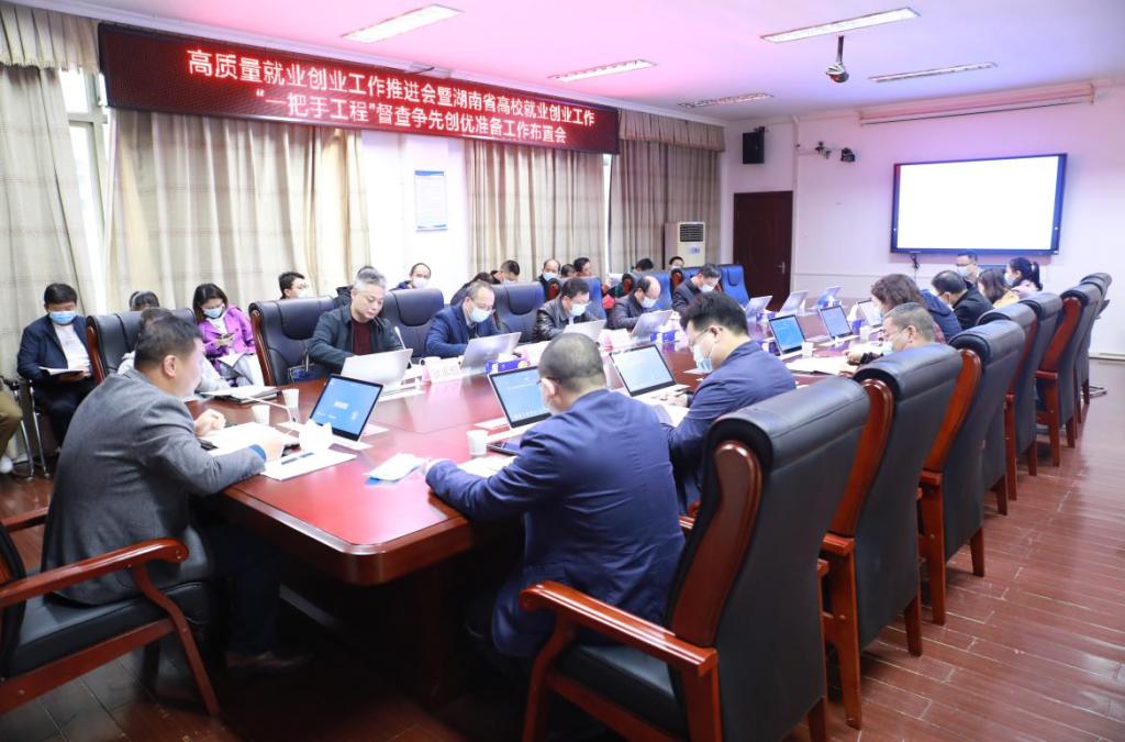 3月31日上午,best365官网召开了高质量就业创业工作推进会暨湖南省高校就业创业工作“一把手工程”督查争先创优准备工作布置会。学院党委书记贺代贵、院长陈剑旄、党委副书记苏基协、副院长朱焕桃出席会议,会议由副院长余求根主持,就创业工作领导小组办公室成员、各二级学院相关负责人参加会议。