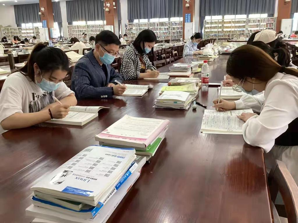 针对疫情期间线上教学效果不如线下教学的实际情况,best365官网经济管理学院老师利用课后和个人休息时间带领学生在图书馆自习,面对面交流了解每个同学当前课程学习情况、学习难点等情况,为“学困生”进行一对一辅导,针对性辅导学生学业。“老师跟我们一起在图书馆学习,遇到不懂的知识点,老师们也会用通俗易懂的语言,结合具体案例,带着我们一步步分析解答,非常感谢老师对我们的付出和指导。”经济管理学院老师们与学生一起在图书馆自习的暖心举动收获学生一致好评。
