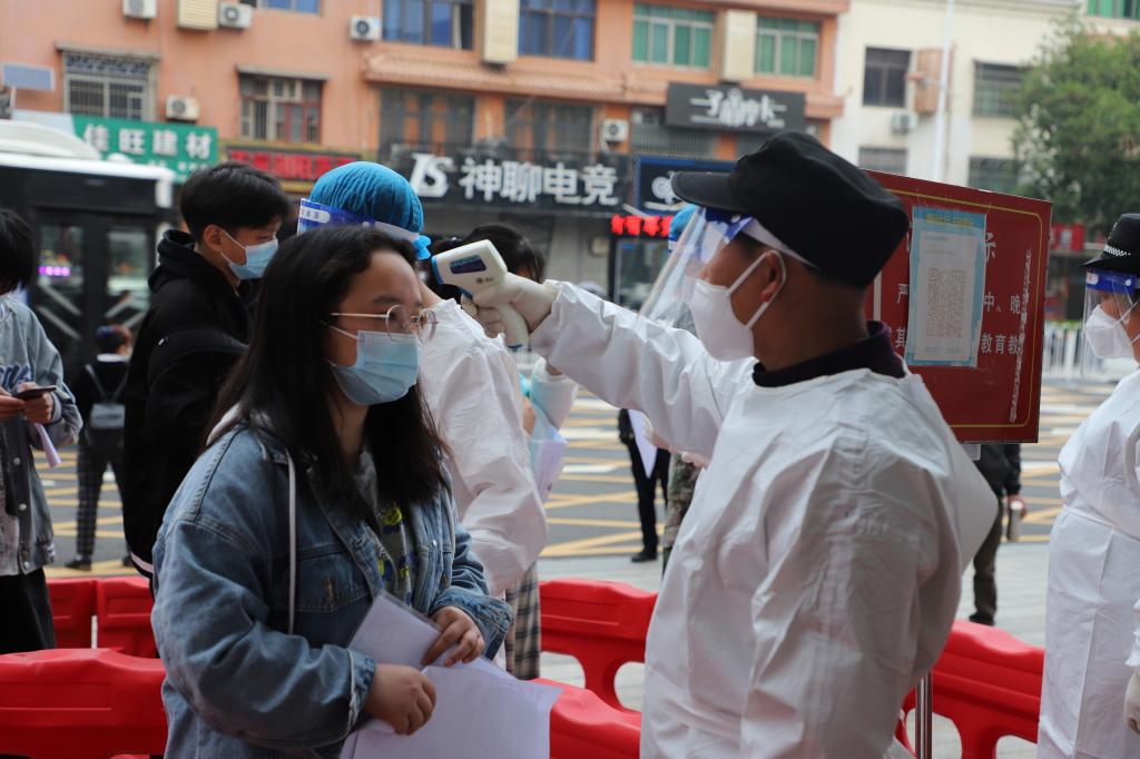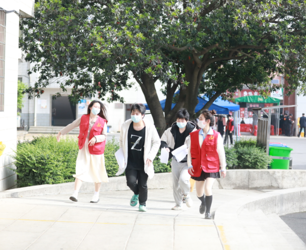 “请考生们戴好口罩有序排队,按照本地防疫政策要求提供核酸检测结果和14天的体温健康监测表,主动出示“三码两证”,走校内安全通道……”考试过程严格执行防疫要求,考试前后对考场进行全面消毒,考生进行消毒和换发口罩,做到有序入场与退场。同时按照应考尽考的原则,对黄码、行程码带“*”等特殊情况的考生设置专用通道和隔离考室。各项考试组织工作平稳有序进行。