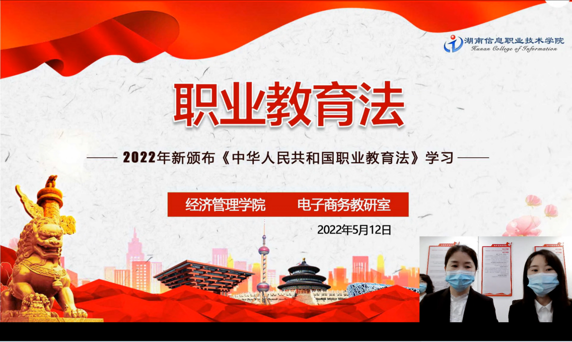 “职业教育的新春天来了,您准备好了吗?欢迎您来到湘信电小商云上分享会,和我们一起共学共享新职业教育法!”5月12日,我校经济管理学院结合电商专业特色,以云上直播的方式面向全校师生,一起学习贯彻新修订的职业教育法。线上线下同步学习研读新法内容,分享新法学习体会,深入探讨如何有效贯彻落实,全面深化学院专业教学教研改革。