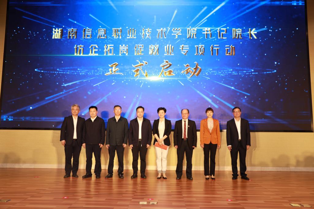 湖南省省教育厅学生处处长曹敏、湖南省大中专院校就业指导中心副主任曾静、望城经开区管委会主任郑以仁、望城经开区党工委副书记佘浩宇、best365手机版官方网站书记贺代贵、院长陈剑旄等领导、望城经开区管委会相关负责人、望城经开区“一主三特”产业链重点企业有关负责同志一同出席了启动仪式。