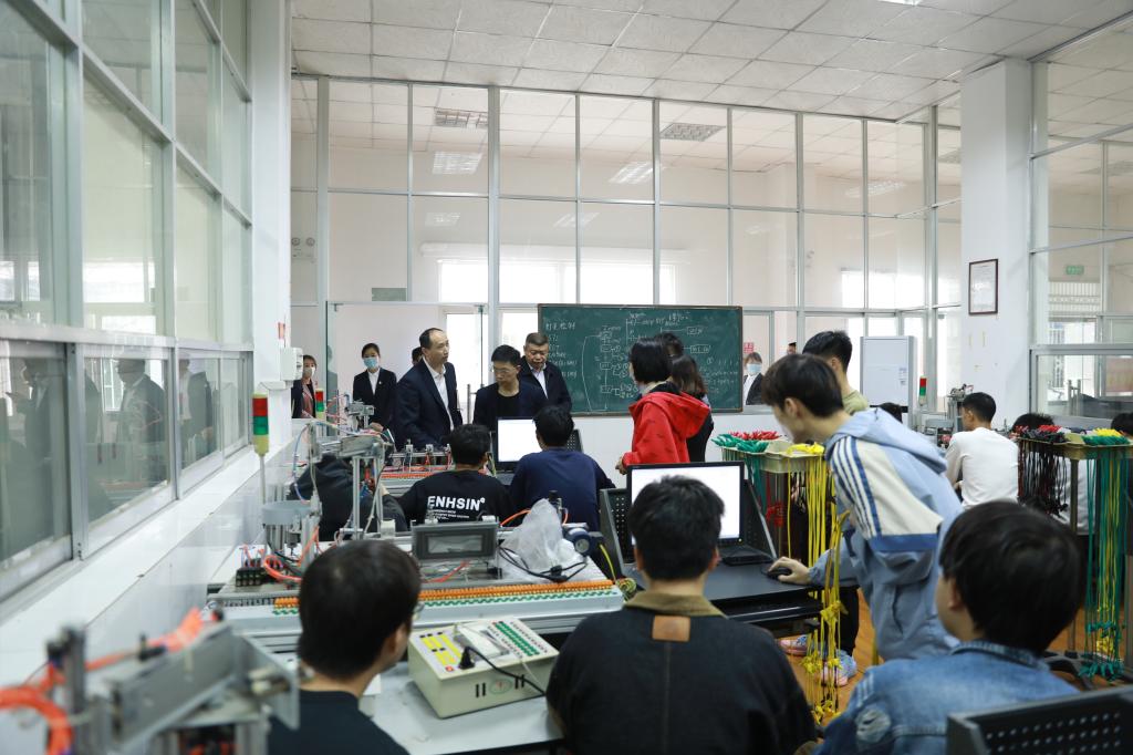 汇报会后,专家组一行查阅了相关资料,并对我校电子工程学院、机电工程学院的实习实训(验)室、生产性实习实训(验)基地以及新校区建设进行了现场考察,重点检查了实习管理制度、实习计划实施和实习组织管理等方面的情况,并同在场师生进行了交流。