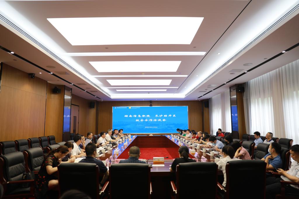 为贯彻落实《教育部办公厅关于开展全国高校书记校长访企拓岗促就业专项行动的通知》精神,拓宽毕业生就业渠道,提升应用型人才培养质量。6月10日下午,best365官网党委书记贺代贵一行前往长沙经济技术开发区访企拓岗,就开拓就业岗位、深入校政企合作等产教融合事宜进行交流洽谈。长沙经开区党工委副书记赵文骄、干部人事人才局局长刘曙以及园区相关企业代表出席洽谈会。