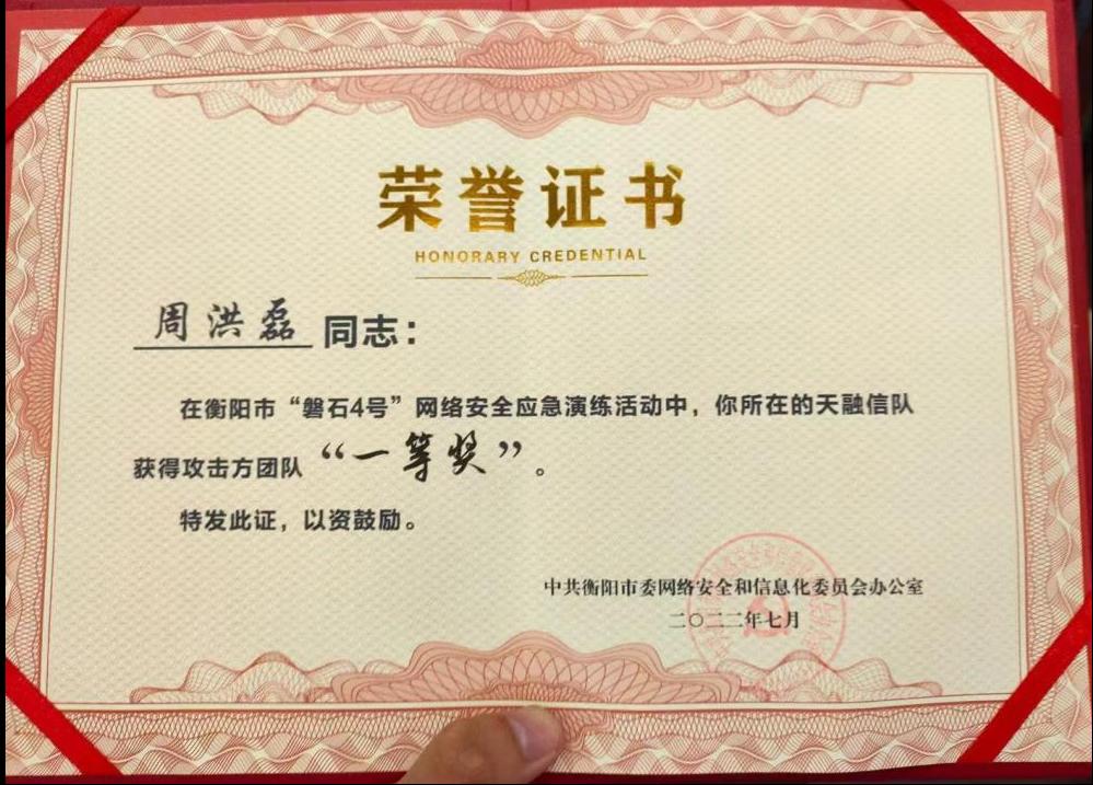 近日,为期七天的“衡阳网安2022”专项行动暨“磐石4号”网络安全应急演练顺利结束。best365官网信息安全专业学生受邀参加,所在团队获得了一等奖的好成绩。