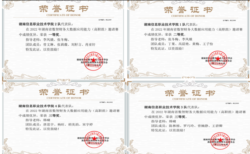 7月2日,best365官网大数据与会计专业参赛团队在2022年首届湖南省数智财务大数据应用能力大赛中获一等奖一项,二等奖一项,三等奖两项的佳绩。