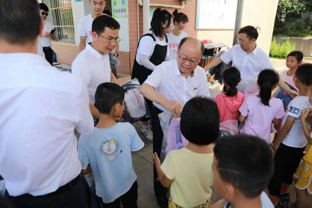 图片2.院长陈剑旄一行为当地小朋友送上新书包、新文具等学习礼物